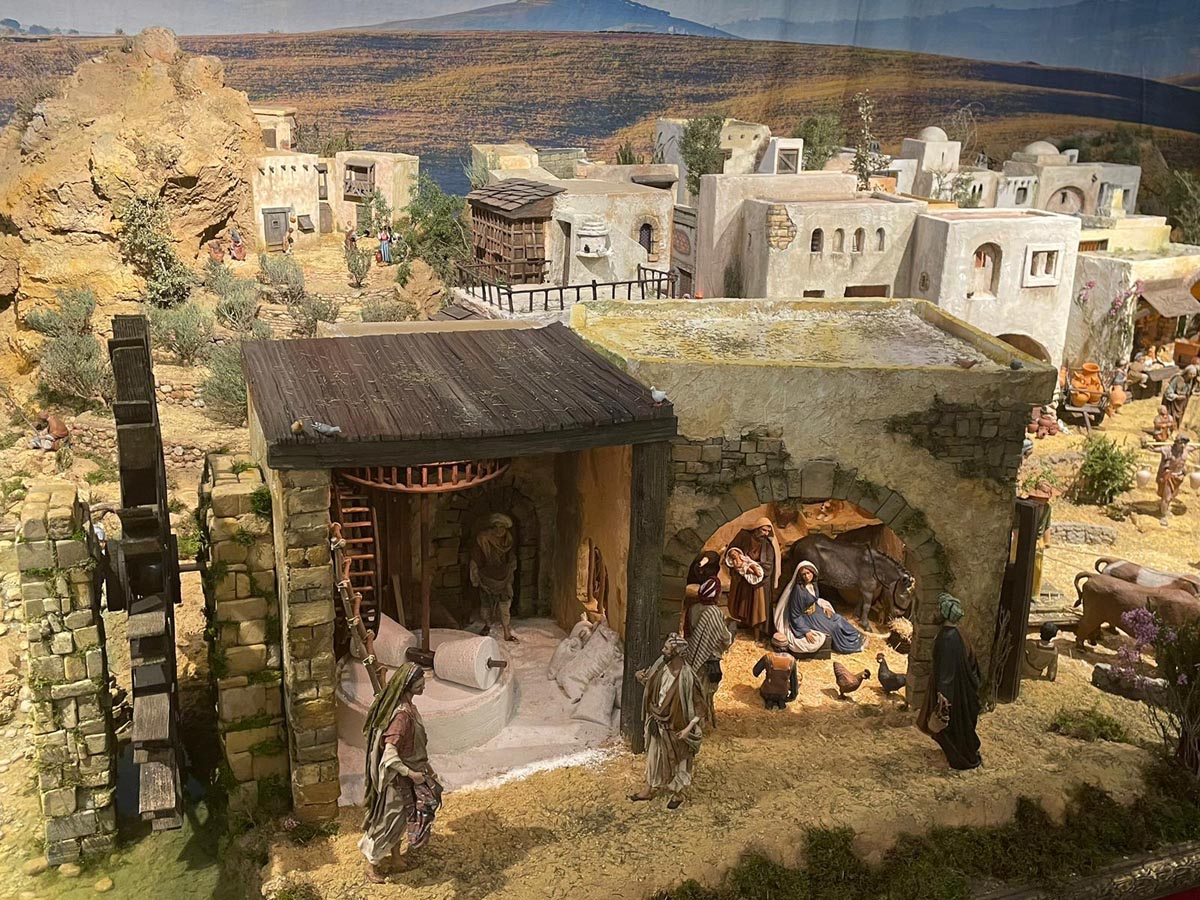 El conjunto integra piezas de la colección de la Asociación de Belenistas, figuras exclusivas de artesanos reconocidos internacionalmente, y la nueva figura de La Buñolera, creada expresamente para la edición de 2024. Además, se han colocado dos reproducciones a escala de la imagen de la Virgen de los Desamparados, cuya ubicación el público puede jugar a descubrir entre la cuidada y amplia escenografía. El conjunto se completa con detalles de decorado que evocan la arquitectura de la antigua Grecia o incluso de la cultura nabatea. Tal como detalló el presidente de la Asociación de Belenistas de València, Gonzalo Mateu, durante la inauguración del conjunto, “cada año trabajamos para sorprender y emocionar, integrando fidelidad histórica, artesanía y referencias a la cultura popular valenciana”.