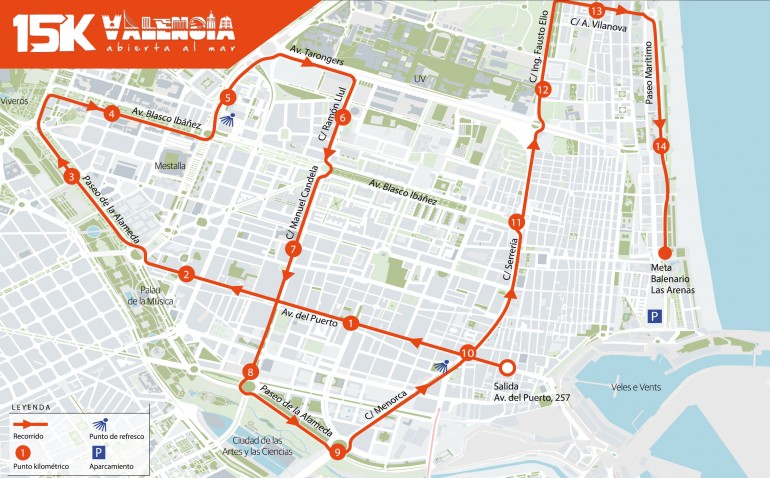Este domingo 26 de febrero una de las pruebas con mayor tirón de la ciudad, la ‘15K Valencia Abierta al Mar’, cumplirá su quinta edición, consolidándose como una de las pruebas de medio fondo referencia de Valencia. Como viene siendo habitual, la salida será a las 9:00 horas al final de la Avenida del Puerto con el edificio del Reloj como testigo. La meta estará instalada junto al Balneario de Las Arenas después de recorrer todo el paseo Marítimo.