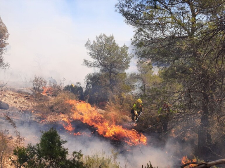 A las 12:45 horas se ha declarado un nuevo incendio forestal, esta vez en el término municipal de Castelló de la Plana, en la partida del Barranco Mal Vestit. Se han movilizado dos unidades y dos autobombas de los forestales de la Generalitat, bomberos del parque de la Plana Baixa y un medio aéreo, además del helicóptero medicalizado que ha atendido al herido.