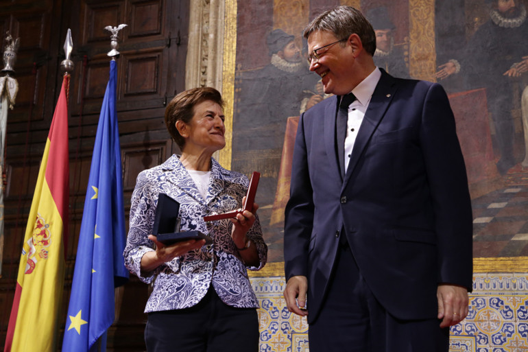 Finalment, la Distinció al Mèrit per Accions a favor de la Igualtat i per una Societat Inclusiva ha anat a l’activista i defensora dels drets socials Amparo Moreno Vañó i a la Coordinadora Valenciana de ONGD.