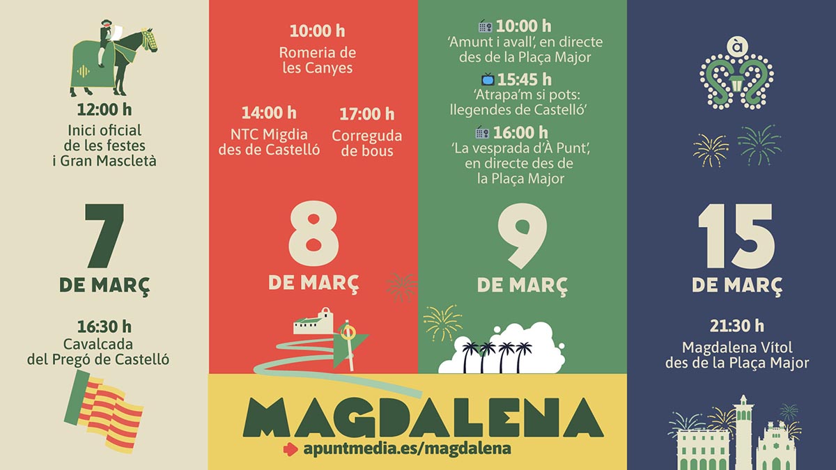 Les festes de la Magdalena ocupen l’actualitat festiva del cap de setmana en À Punt i per això els Informatius de la cadena també s’incorporen este diumenge a l’epicentre de la festa castellonenca.