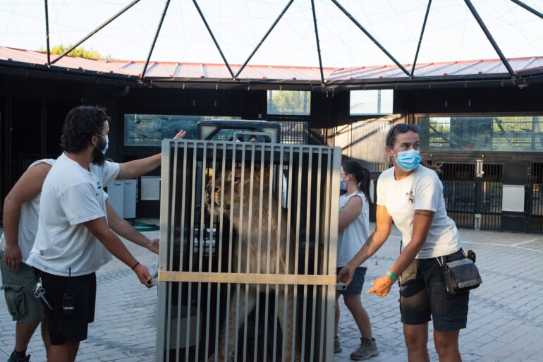 AAP, un centro de rescate de animales de Villena, acoge un león que estaba abandonado en Ucrania
