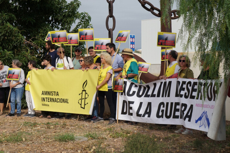 Recuerdan los ecologistas que, mientras continuaban manifestándose pacíficamente en defensa de los derechos humanos, en contra de los autoritarismos y de los crímenes que están cometiéndose a unos 6.000 kilómetros de distancia, compañeras de «Acció Ecologista-Agró y Antimilitaristes-MOC (Moviment d’Objecció de Consciència) permanecen a la espera de que las sanciones recibidas (multas de 500 euros) en un acto de protesta del año 2019 sean anuladas».