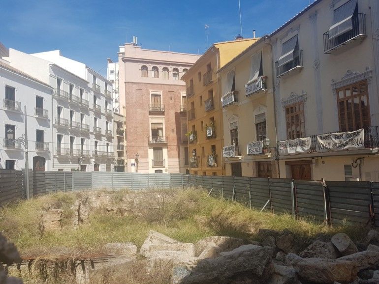 Cientos de turistas pasan cada día junto a un solar abandonado, con una valla metálica que deja entrever la basura en su interior y nada de lo que es un vestigio importantísimo del patrimonio valenciano.