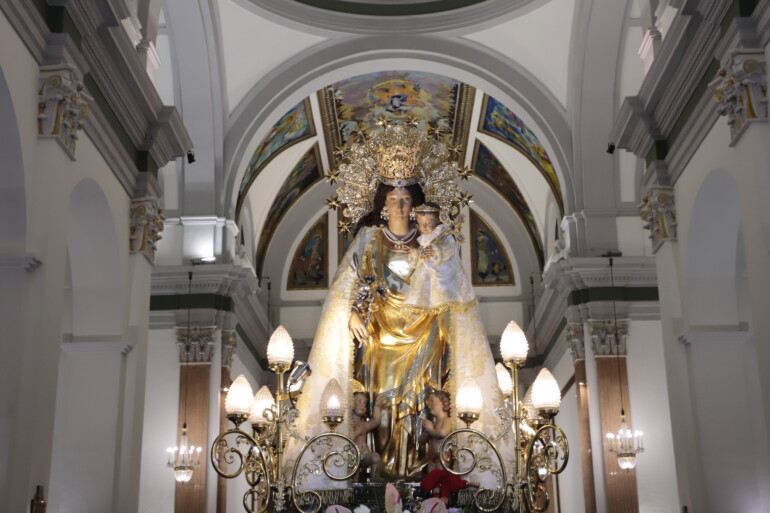 Fotos: Félix Perona.- La ciudad alicantina de Alcoi, perteneciente a la diócesis de Valencia, se ha volcado en la organización de la visita especial, este pasado fin de semana, de la imagen procesional de la Virgen de los Desamparados, en el Año Jubilar del Centenario de la Coronación Canónica, que ha sido recibida con canciones, toques extraordinarios de campanas y una mascletà ‘humana’ a cargo de grupos juveniles.