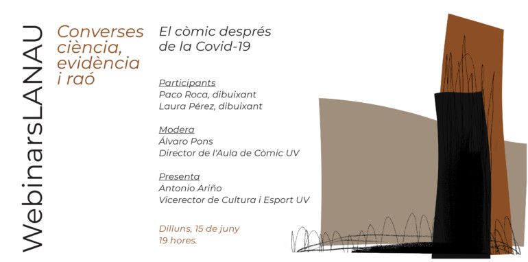 El profesor y director del Aula del Còmic de la Universitat de València, Álvaro Pons, conversará el próximo lunes, día 15 de junio, a las 19 horas, con los autores Paco Roca y Laura Pérez sobre cómo ha afectado la pandemia al cómic valenciano, y a ellos como autores, tanto desde el punto de vista creativo como a una industria que comenzaba a moverse de forma conjunta, en una nueva edición de WebinarsLaNau. La sesión es gratuita y requiere inscripción en http://www.uv.es/webinarslanau. El ‘webinar’ se podrá recuperar con posterioridad desde Canal YouTube del Centre Cultural La Nau.