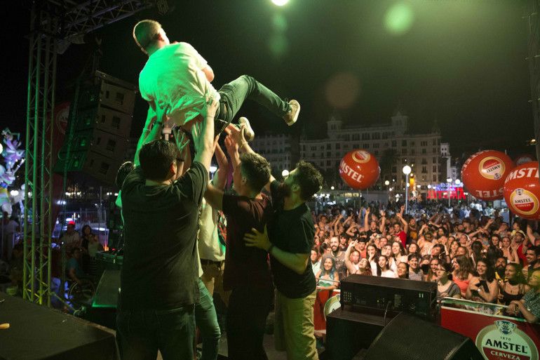 La actuación ofrecida por Amstel tuvo la visita sorpresa del President de la Generalitat, Ximo Puig. Y arrancó con el artista animando al público a que le lanzara frases e ideas con las que inspirarse. En un ambiente muy divertido, con la complicidad de los foguerers y de los seguidores del artista que se acercaron a las instalaciones de Port d’Alacant para disfrutar de este concierto – abierto al público y gratuito – se fue creando un repertorio en el que Arkano repasó alguno de sus éxitos, como Diferente o Niño mimado, y en el que también sonaron canciones improvisadas, que reconocen a las fiestas y a los personajes anónimos que trabajan todo el año para hacerlas posible.