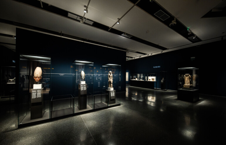 Los visitantes podrán descubrir una selección de estatuas monumentales, relieves en piedra de antiguos templos, papiros, joyas y objetos rituales. Destacan varias piezas únicas: la figura del dios halcón Re-Haractes, una cabeza impresionante del faraón Tutmosis III de limolita verde, unas losetas del palacio de Ramsés III o un busto de mármol de Alejandro Magno.