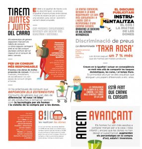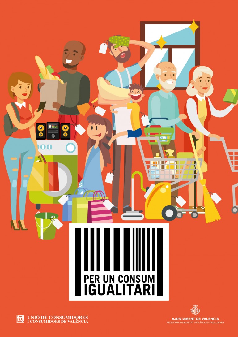 «Por un consumo igualitario» es una campaña que se desarrolla conjuntamente por la Unión de Consumidores de València y la Concejalía de Igualdad y Políticas inclusivas y se han elaborado 20.000 folletos informativos y carteles que se distribuirán en centros de mujeres, asociaciones de vecinos, mercados municipales y otros colectivos sociales de la ciudad de València.
