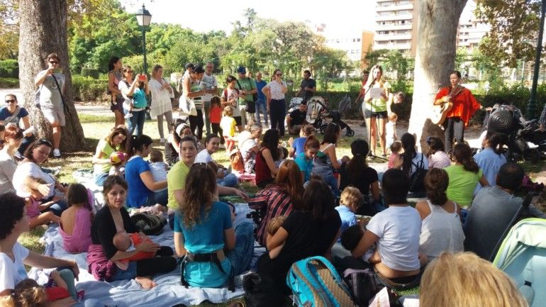Más de doscientas familias se han reunido este domingo en los Jardines de Viveros de Valencia para celebrar la Semana Mundial de la Lactancia Materna y demandar, entre otras cosas, que desde las empresas “se cumplan las leyes de protección a la lactancia materna y se ponga a disposición de las empleadas medidas que garanticen la lactancia materna durante al menos los primeros seis meses de vida de los bebés”.