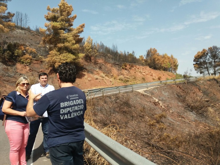 La diputada ha visitado esta mañana la zona que se quemó en el último incendio de la Sierra Calderona guiada por efectivos de las Brigadas Forestales de Divalterra, entre otros por el director de área, Manuel Carot. Tras la visita, Peris ha criticado que “las Brigadas no tienen suficientes medios materiales y humanos”.