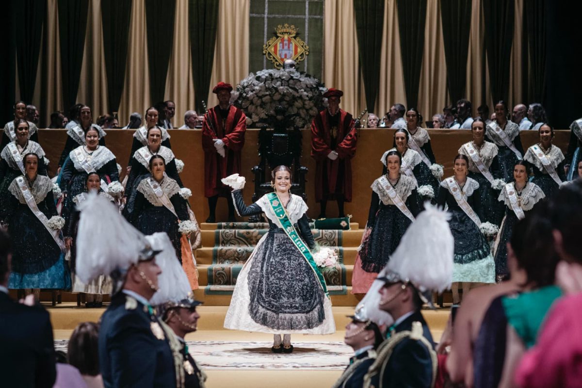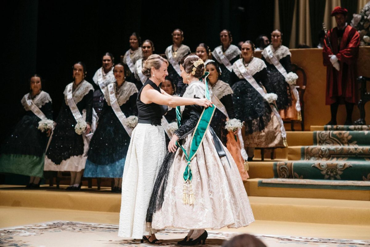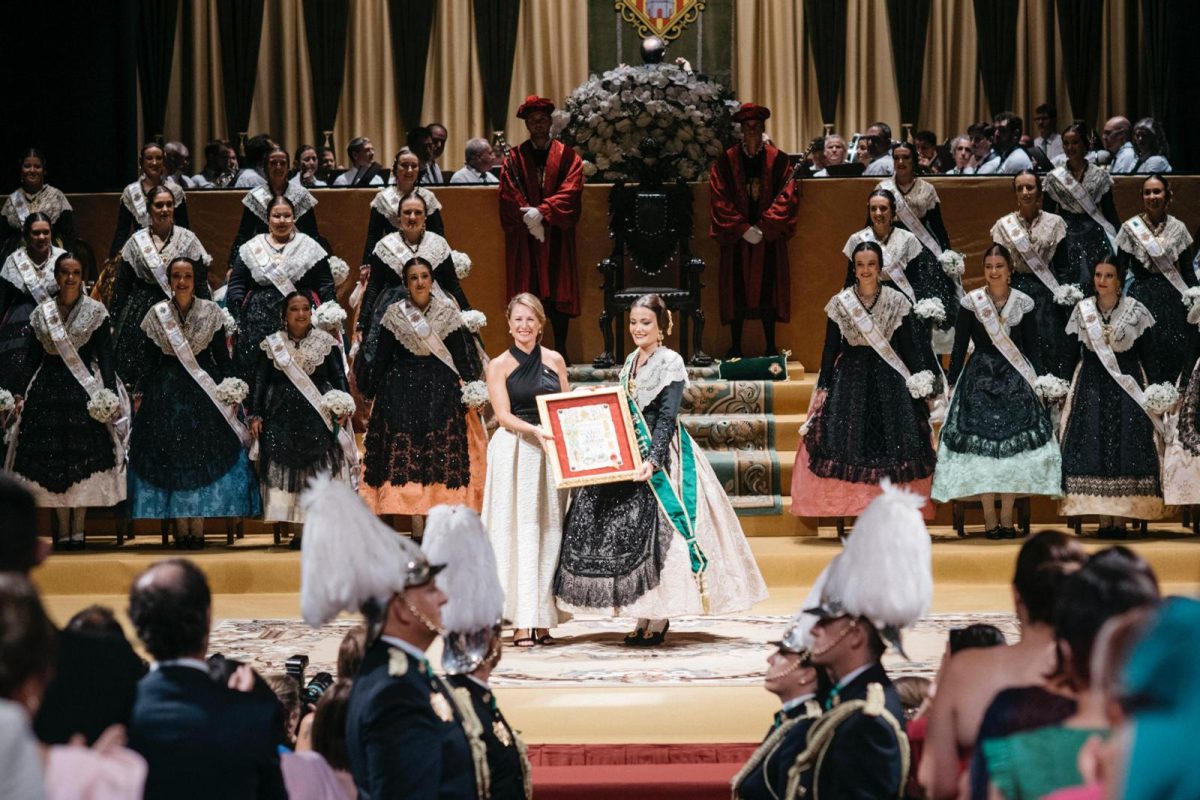 Una vez las Madrinas han recibido su banda, que las distingue como tal, ha continuado la solemnidad del acto con la imposición de bandas a las Damas de la Ciudad, encabezadas por la Dama dels Cavallers, Na Violant d’Hongria Victoria Arcos i Vicente, seguida de Beatriz Also i Galaso, Marta Ferrando i Abellán, Lledó Calero i Andrés, María Guzmán i Santolaria, Claudia Llopis i Pascual y Naiara Gimeno i Olmedo.