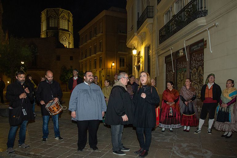 Tras el concierto, se celebró la cena para las entidades vicentinas, y tras ésta tuvo lugar una gran ‘Nit d´albaes’ que recorrió los lugares vicentinos pasando por la Plaza de la Virgen, la parroquia de San Esteban, donde fue bautizado; su Casa Natal, conocida como “el Pouet”; y la iglesia del antiguo convento de Santo Domingo, de Valencia, donde residió y se formó en sus primeros años en la Orden de Predicadores.