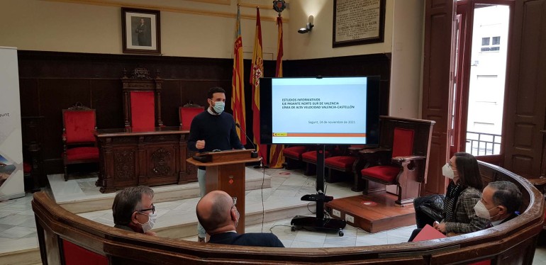 Darío Moreno durante un plenoHace menos de dos años, el 24 de noviembre de 2021, el Ministerio presentó a los municipios afectados en el Ayuntamiento de Sagunto el estudio informativo del nuevo eje norte-sur de la Red Arterial Ferroviaria de Valencia y el estudio informativo de la línea de alta velocidad Valencia-Castellón elaborado por el Ministerio de Transportes, Movilidad y Agenda Urbana.