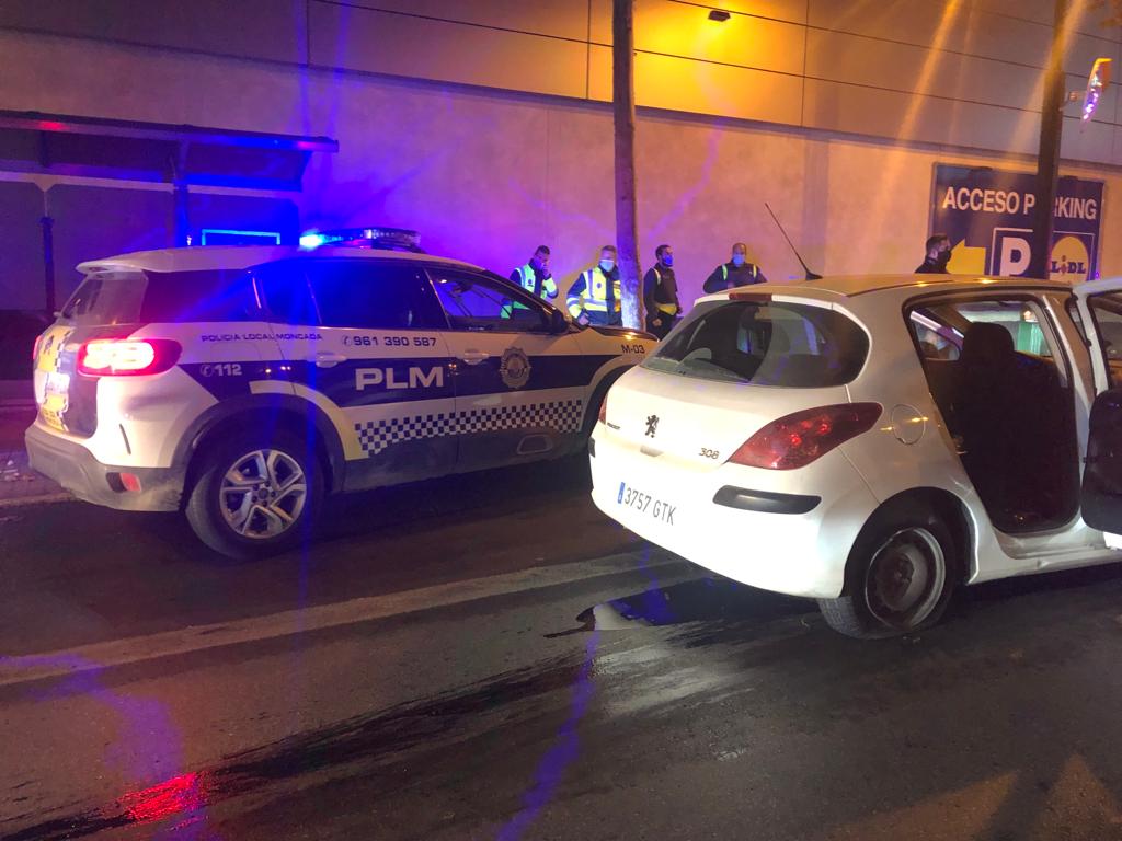 La Policía Local, durante un patrulla de vigilancia por el polígono industrial II, localizó una furgoneta con el motor caliente y abierta en las proximidades de una nave industrial. Al ser detectada la presencia policial 4 hombres salen corriendo. Uno de ellos se sube a un coche y se da la fuga siendo perseguido por los agentes de la Policía Local de Moncada.