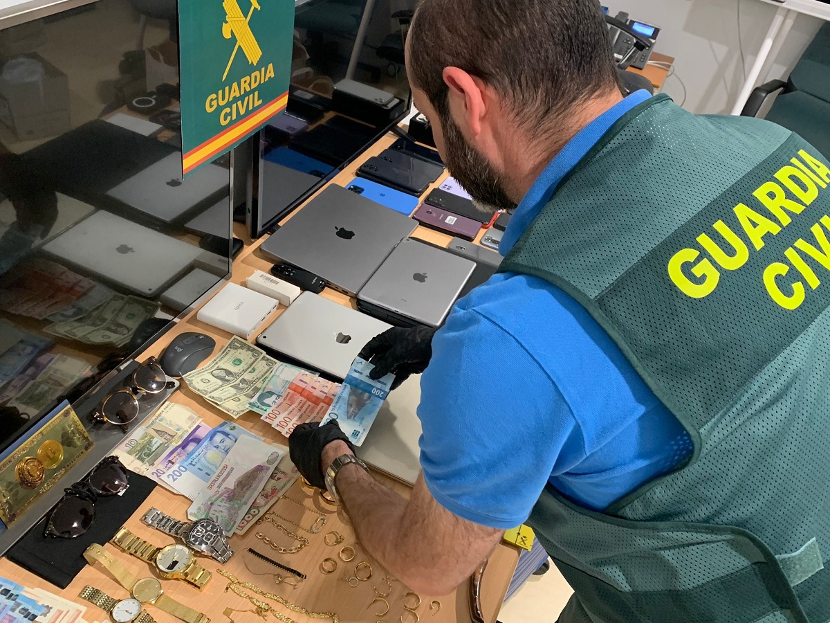 Una vez que los agentes localizaron en la localidad de Ibi, el inmueble donde se alojaban los presuntos autores, realizaron un registro domiciliario donde se intervinieron teléfonos móviles, material informático, maletas, tres turismos, documentación personal de terceras personas, 9.700 euros en efectivo, divisas de diferentes países y otros objetos procedentes de robos. Además, durante el desarrollo de la operación se intervino otro turismo.
