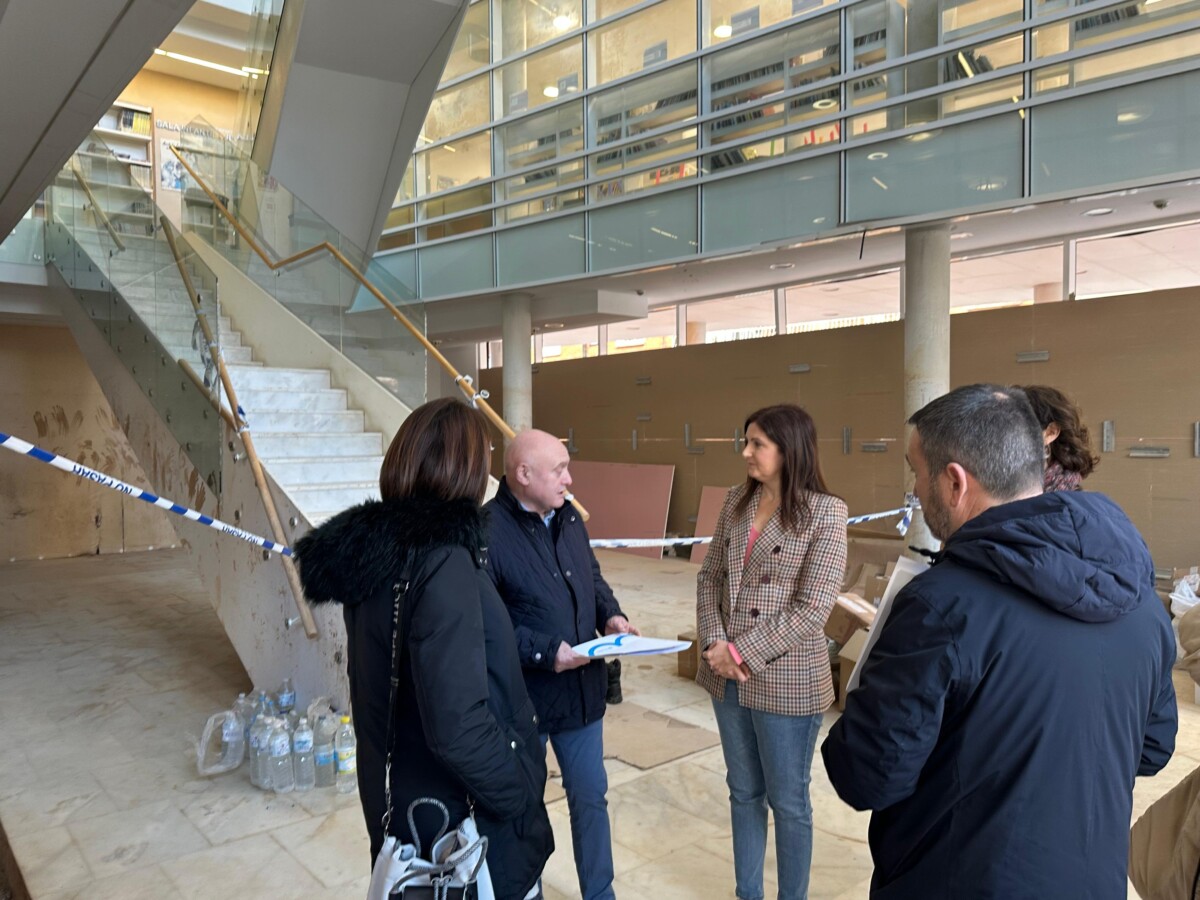 Después, el diputado provincial se ha desplazado a la Biblioteca María Moliner Ruiz de Paiporta con la alcaldesa de la localidad, Maribel Albalat. El depósito y parte del archivo municipal se encuentran «totalmente afectados», así como las colecciones de la planta baja.