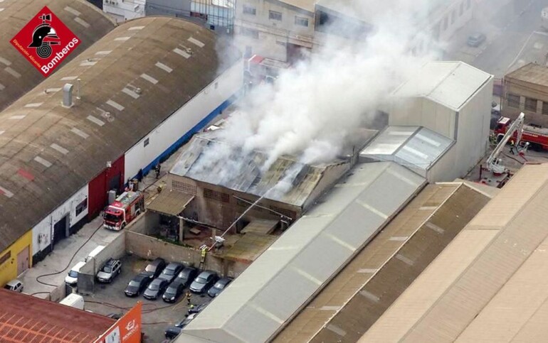El fuego se ha iniciado en una nave industrial ubicada en los números 10 y 12 de la calle Van Dyck y hasta allí se han desplazado dotaciones de los Bomberos del Ayuntamiento de Alicante con la colaboración del Consorcio Provincial de Bomberos de Alicante, que ha aportado nueve bomberos, un sargento y un cabo, con una unidad de mando y jefatura (UMJ), una bomba urbana pesada (BUP) y tres bombas nodrizas pesadas (BNP), dos del parque de San Vicente y una del parque de Elche.