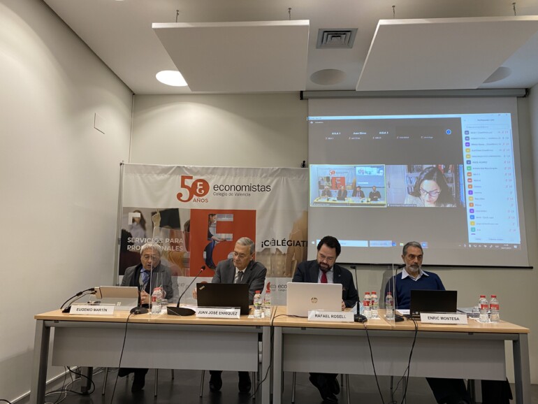 El Colegio de Economistas de Valencia ha realizado hoy una mesa redonda titulada “Impacto económico de los ciberataques” donde ha participado el Decano del COEV, Juan José Enríquez; el copresidente de la Comisión de Nuevas Tecnologías del COEV, Enric Montesa; la especialista en Ciberseguridad e Identidad Digital, Selva Orejón y el Director Comercial y de Estrategia de la empresa de ciberseguridad S2 Group, Rafael Rosell, y ha estado moderada por Eugenio Martín.