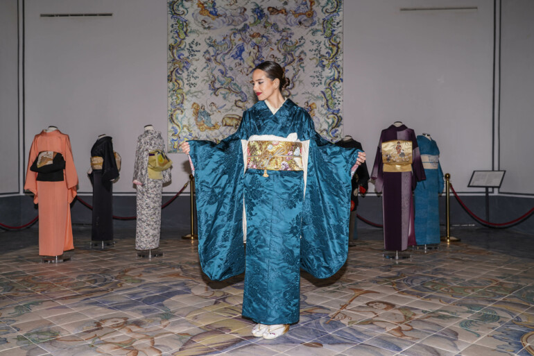 El Colegio del Arte Mayor de la Seda ha querido rendir un homenaje a la cultura japonesa y al arte de vestir el kimono. Para lograr una fusión entre las culturas valenciana y japonesa, el colegio profesional más antiguo y emblemático de Valencia decidió hacer un kimono «elaborado con seda y tejido valenciano. Esta última exposición temporal nos ha dado grandes alegrías. La última, probablemente, sea esta prenda única, de un valor incalculable, que se quedará de forma permanente en los fondos del museo”, afirma Vicente Genovés, presidente del Colegio del Arte Mayor de la Seda.