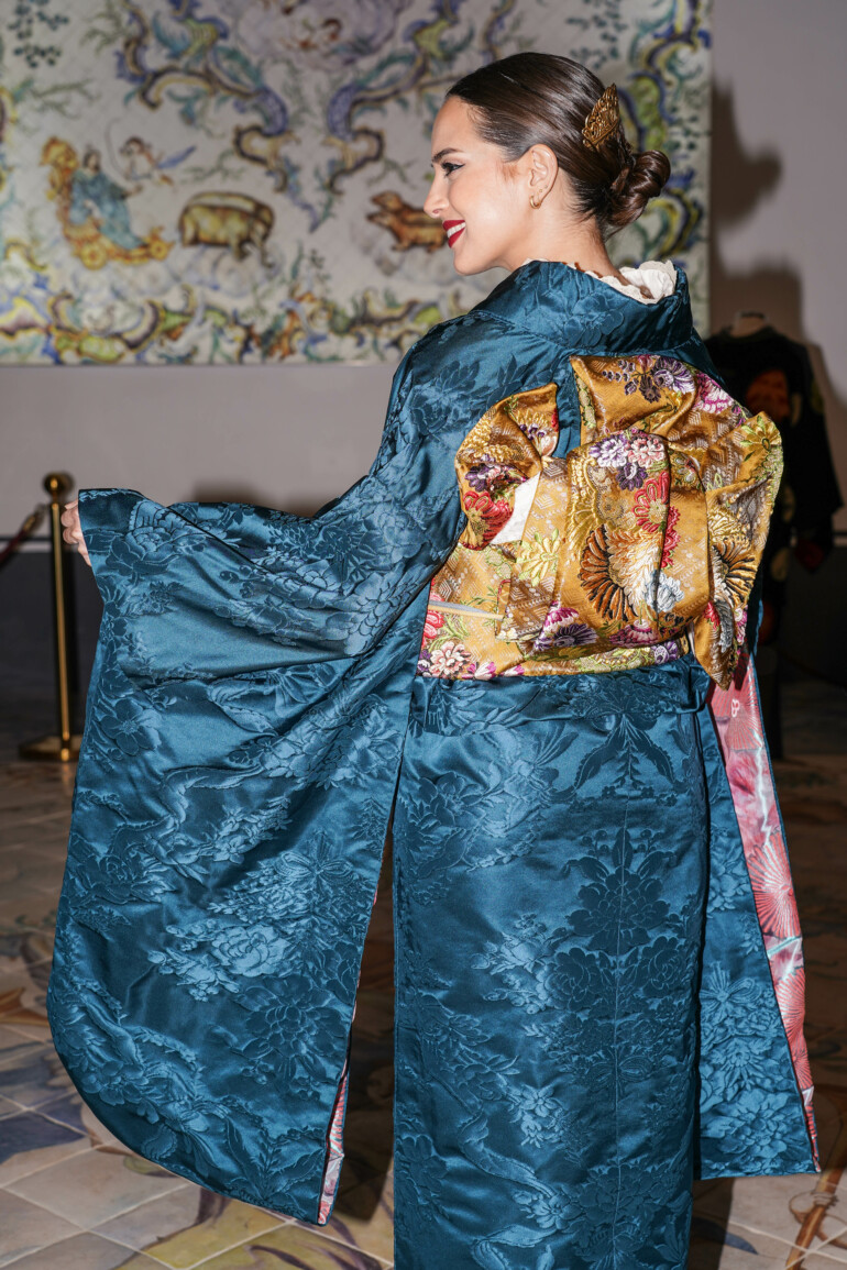 A partir del sábado 12 de marzo, este kimono de sedas valencianas estará expuesto en el centro de la Sala de la Fama, integrado junto con el resto de la exposición temporal ‘Kimono. De la tradición a la moda’.