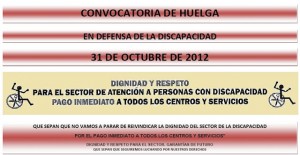 Según información que vemos publicada en la web de la CGT. El sector de la discapacidad bajo su situación de abandono por parte de la administración ya no aguanta más y “es inadmisible”. Por lo que no ve otra alternativa que convocar una huelga para el día 31 de octubre de 2012.