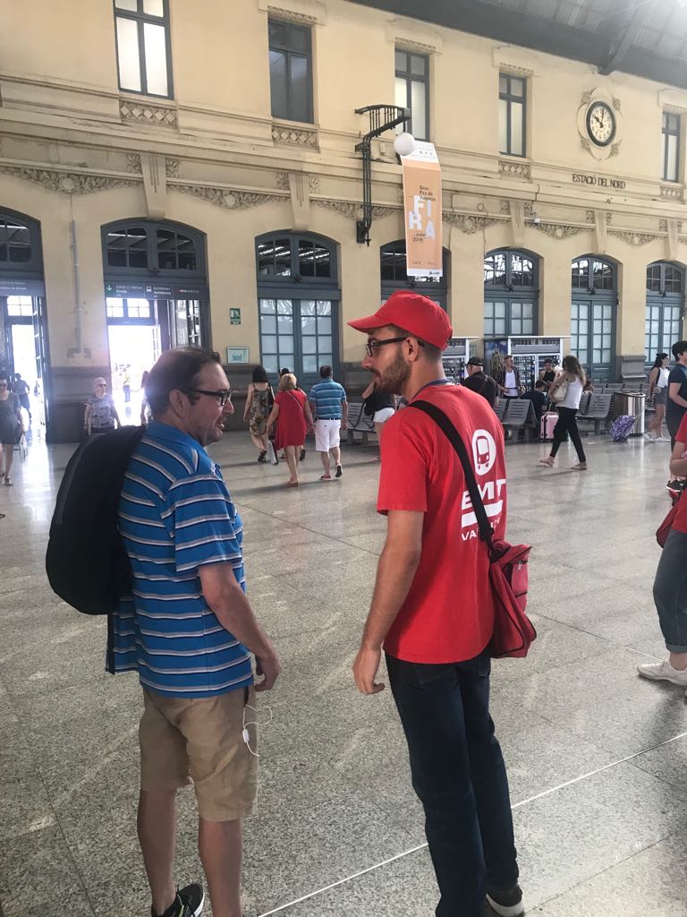 La ciutat de València reacciona davant la vaga dels taxistes ajudant els usuaris. Des de primera hora del matí  d’ahir, l’Empresa Municipal de Transports (EMT) va instal·lar punts d’informació en les estacions de tren de Joaquin Sorolla (AVE), Estació del Nord i d’autobusos per a facilitar tota la informació sobre les possibilitats per a moure’s per la ciutat i arribar a la destinació desitjada.