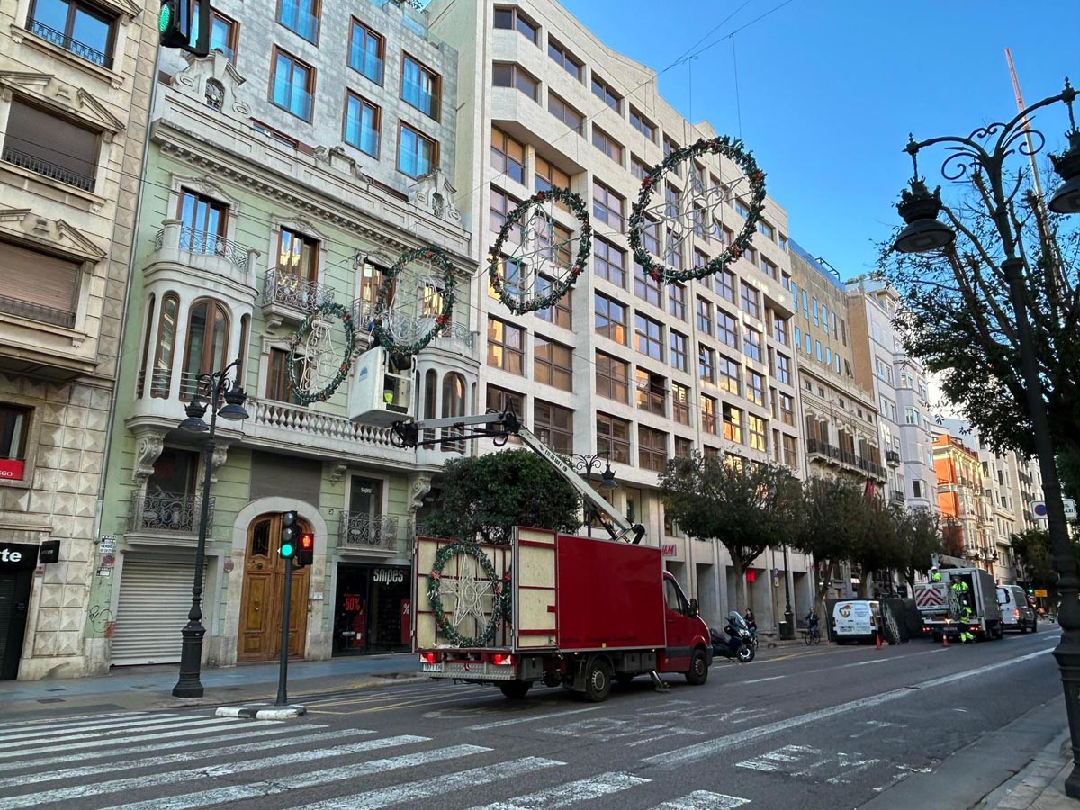 La calle de la Paz va a contar con 60 arcos tipo lágrima como el año pasado, pero este año con la novedad de que son de tipo glitter, un material que también brilla y se ilumina durante el día. Y en las avenidas del Cid y de Catalunya, en las Grandes Vías de acceso a la ciudad y en la avenida JJ Dómine se han instalado cuatro kilómetros de guirnalda de  luz suspendida en forma de zigzag, así como en las principales zonas comerciales, como la calle Don Juan de Austria y el Paseo de Russafa, así como en las calles próximas al Mercado Central. “Y este año, también como novedad, se instalará también esa guirnalda en la plaza de San Agustín”, ha añadido la concejala.
