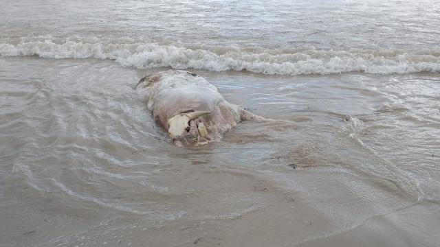 El cuerpo sin vida del animal, de aproximadamente 600 kg y en avanzado estado de descomposición, habría llegado hasta la orilla arrastrado por las corrientes, donde fue avistado por usuarios de la playa quienes alertaron del hallazgo.