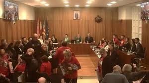 Estas palabras provocaron la reacción de varios asistentes, algunos con camisetas con la bandera republicana y una foto de Miguel Hernández, quienes gritaron interrumpiendo a la concejala. El alcalde de Orihuela, Pepe Vegara (PP), advirtió de la posible expulsión y finalmente ordenó desalojar a una de las personas que protestaban, lo que llevó a otros manifestantes a abandonar el pleno.