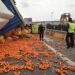 El vuelco de un camión de naranjas provoca retenciones en la A-31 por Novelda