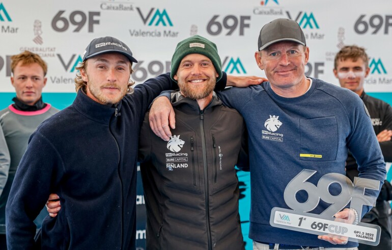 Los regatistas Cas Van Dongen, Allan Norregaard y Janne Jarvinen del equipo Fin1Racing han ganado los dos grandes premios disputados en Valencia Mar: «Estamos muy contentos con el resultado. Para esta última ronda de regatas tuvimos un nuevo patrón, Cas Van Dongen, quien nos apoyó en nuestros entrenamientos durante los meses de invierno», explica el regatista Allan Norregaard. Con estos resultados, el equipo finladés se ha adjudicado dos triunfos consecutivos, demostrando un dominio absoluto en esta modalidad y su experiencia tras comprar plaza en los tres últimos GP de la temporada europea 2021 en Torbole y Puntaldia.