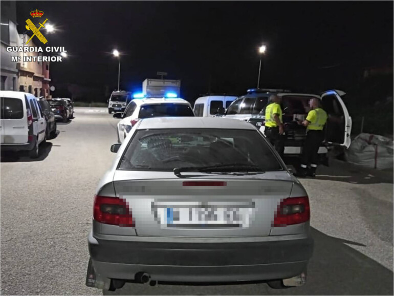 La noche del pasado 13 de mayo, mientras los agentes de la Guardia Civil de Tráfico realizaban un control específico de vigilancia de la seguridad de la vía, en la carretera CV-831 a su paso por la localidad de Monforte del Cid, observaron que un turismo que circulaba en dirección al control se daba la vuelta haciendo una maniobra prohibida e iniciando una carrera para darse a la fuga. Los agentes se montaron rápidamente en los vehículos oficiales iniciando la persecución.