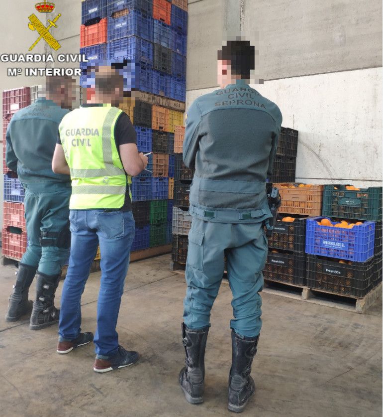 Otra de las pesquisas, dieron lugar a la localización de dos almacenes ilegales, procediendo a la incautación de 1.613 envases de plástico, con un valor de mercado de cerca de los 10.000 €. Dichos cajones los utilizaban para recolectar y almacenar cítricos que posteriormente vendían a países de la Unión Europea y empresas nacionales.