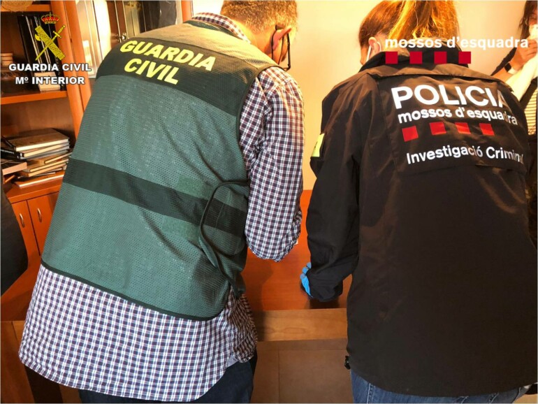Así las cosas, el pasado miércoles día 2 de junio, tras un arduo trabajo de todos los agentes implicados en las investigaciones, se inició la fase de explotación. Se llevaron a efecto 11 registros de forma simultánea. Cinco de ellos tuvieron lugar en la provincia de Barcelona, en los que se detuvo a cinco personas; otro en Tarragona, con dos detenidos; cuatro en la provincia de Madrid, con siete detenidos; y finalmente, otro en Guardamar del Segura (Alicante), que se saldó sin detenidos.