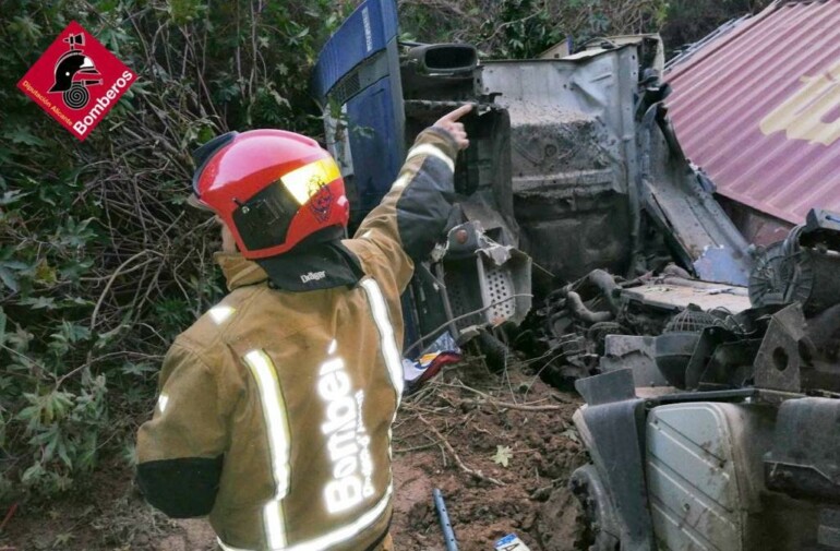 El conductor del camión, un hombre de 65 años, ha sido estabilizado por el equipo médico del SAMU y ha sido trasladado al Hospital del Vinalopó de Elche