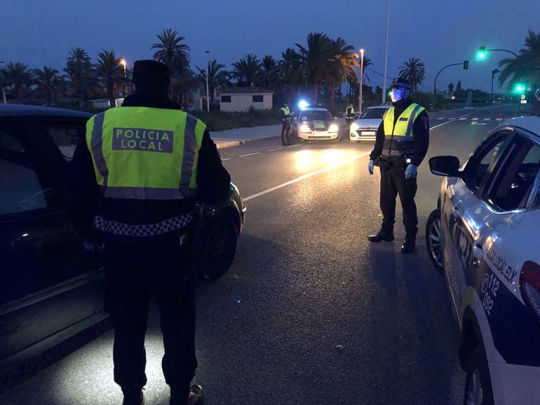 Patrullas de la Policía Local de Elche, en colaboración con la Policía Nacional, están realizando intensos controles en las principales entradas y salidas de la ciudad, así como en las pedanías, para concienciar a los ilicitanos e ilicitanas de que deben permanecer en sus casas y seguir las directrices marcadas por las autoridades con el fin de frenar la expansión del coronavirus COVID-19.