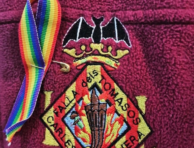 Toda la falla Tomassos lleva un lazo arcoiris en apoyo a su joven fallero agredido por indeseables