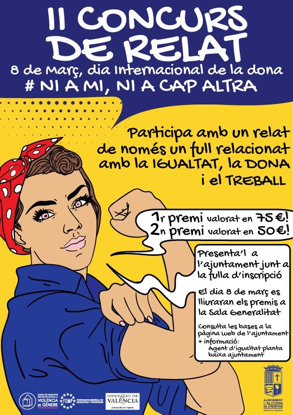 La regidoria d’Igualtat a l’Ajuntament de l’Alcúdia de Crespins publicarà en els pròxims dies les bases de la segona edició del concurs de relats per a commemorar el 8 de març, el Dia Internacional de la Dona. En aquesta edició, es podrà participar, de forma individual, qualsevol persona major d’edat, de qualsevol nacionalitat i lloc de residència però, a més, també podran fer-ho aquelles persones menors d’edat que compten amb l’autorització signada del pare, mare o tutor que s’adjuntarà al relat.