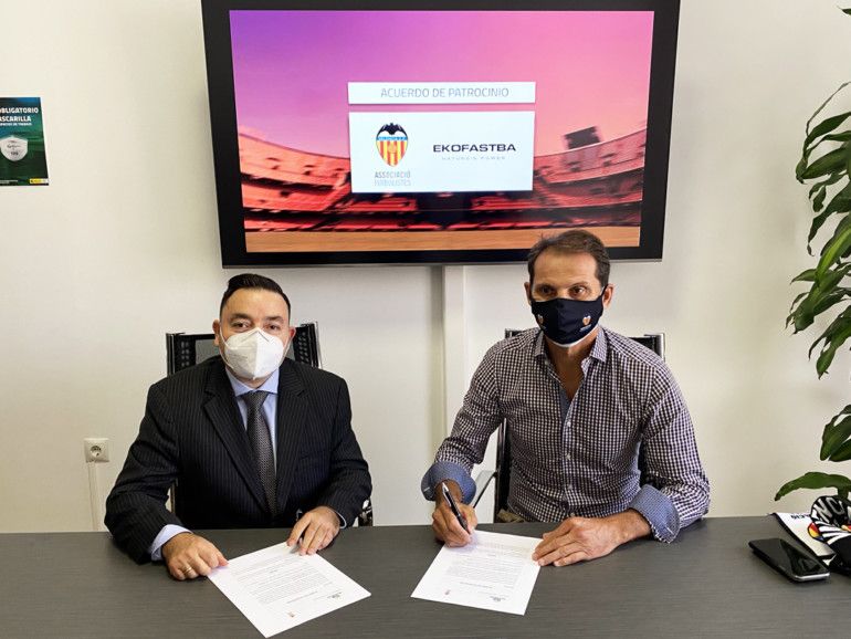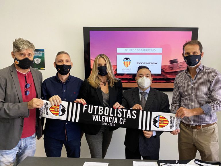 La Asociación de Futbolistas del Valencia CF ha firmado un acuerdo de colaboración y de patrocinio con EKOFASTBA y TFS Grupo mediante el cual las mencionadas empresas ayudarán en la realización de los principios fundacionales y los fines sociales de nuestra Asociación. El acuerdo ha sido sellado este jueves con la presencia de Fernando Giner, presidente de la Asociación, el embajador del Valencia CF, Miguel Tendillo; Carmen Gavilá, representante de TFS y Victor Stern, representante de Ekofastba.
