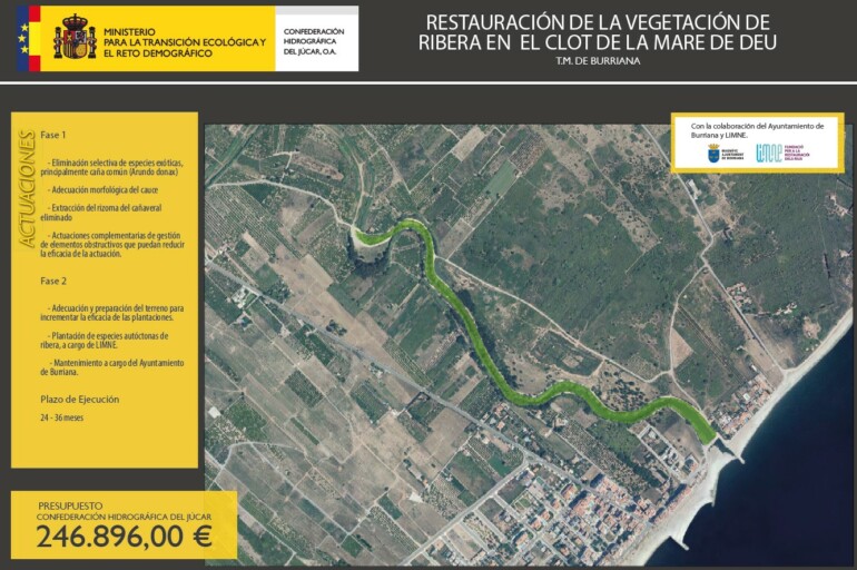 Esta actuación ha sido posible gracias a un acuerdo de colaboración entre el Ajuntament de Borriana, que realizará el mantenimiento de las actuaciones, la Fundació per a la Restauració dels Rius, Limne, el Centre d’Investigació i Experimentació Forestal (CIEF) y la propia Confederación Hidrográfica del Júcar.