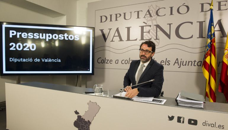 El diputado responsable de Hacienda e Innovación, Vicent Mascarell, ha presentado este viernes la propuesta de presupuesto de la Diputació de València para 2020, que se incrementa un 9% hasta alcanzar los 530 millones de euros, casi 44 millones más que en el ejercicio anterior. Estas cuentas, que se deben aprobar en el pleno extraordinario del próximo lunes, “pondrán a disposición de los municipios valencianos la mayor partida presupuestaria de la historia”.