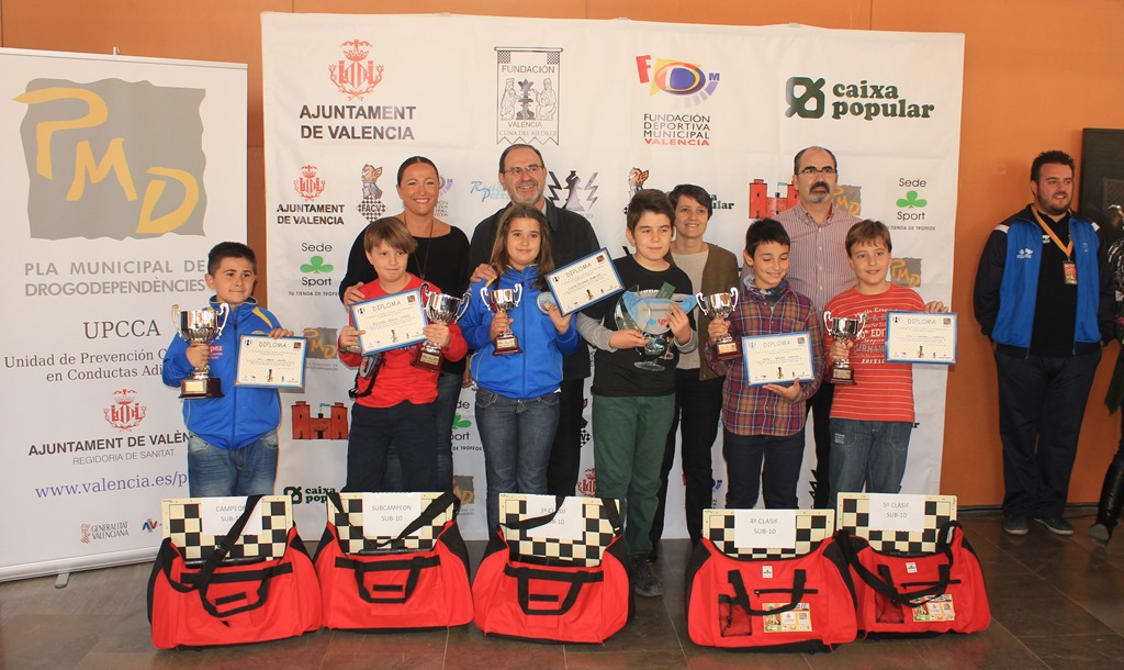 Al finalizar la Gran Final y con ella el torneo, se celebró en la magnífica Sala Valencia Origen del Ajedrez 1475,ubicada en el centro deportivo, la entrega de premios; una gala que estuvo presidida por la concejala de Sanidad y Consumo del Ayuntamiento de Valencia, Lourdes Bernal, quien estuvo acompañada por la directora gerente de la Fundación Deportiva Municipal, María Angeles Vidal, el presidente de la Federación de Ajedrez de la Comunidad Valenciana, Francisco Cuevas, y el jefe del Servicio del Plan Municipal de Drogodependencia, Francisco Bueno.