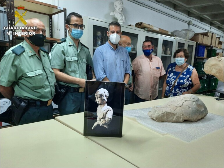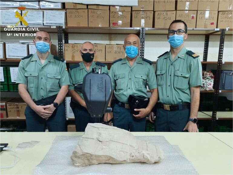 La Guardia Civil de Alicante ha acudido este martes al Museo Arqueológico de Historia de Elche (MAHE), donde el Institut Valencià de Conservació, Restauració e Investigació (IVCR+i) ha iniciado el análisis de una pieza hallada por un labrador de forma casual en 2018, e intervenida por el Servicio de Protección de la Naturaleza (SEPRONA) de Elche.