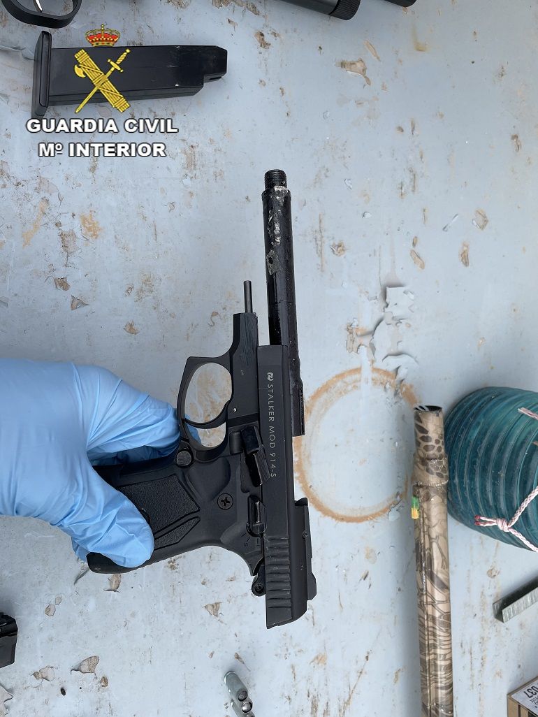 Continuando con las investigaciones, ha permitido desarticular una estructura criminal organizada que introducía en España armas detonadoras fácilmente convertibles en armas de fuego reales, adquiridas en países del Este de Europa, para posteriormente manipularlas en un taller clandestino ubicado en la provincia de Alicante, donde las modificaban para hacerlas aptas para disparar munición con proyectil y hacer fuego real, siendo finalmente distribuidas a compradores por todo el territorio nacional.