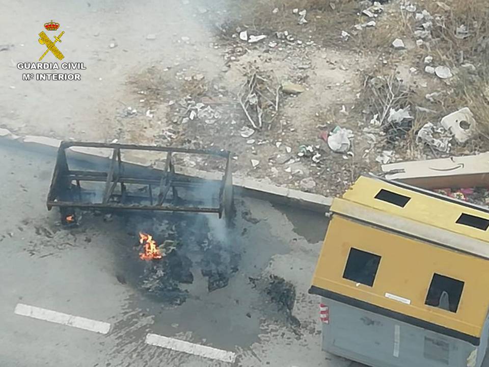 A raíz de la denuncia, los agentes del Área de Investigación de la Guardia Civil de San Vicente del Raspeig, encargados de las averiguaciones, constataron que nueve vehículos habían sufrido la rotura de las lunas mientras estaban estacionados en un polígono de la localidad. Así mismo, en las inmediaciones de esa zona había tenido lugar un incendio originado en dos contenedores.