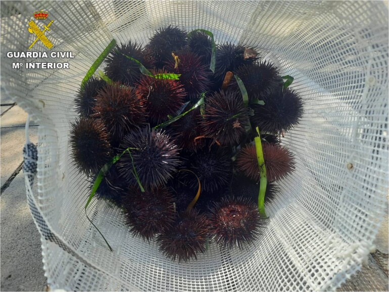 La Guardia Civil de Alicante ha investigado a un hombre al que se le imputa un delito relativo a la Protección de la Flora, Fauna y Animales Domésticos por capturar ilegalmente erizos de mar en una zona rocosa del Cabo de las Huertas, en Alicante. Fue sorprendido por los agentes cuando salía del agua con casi un centenar de ejemplares inmaduros.