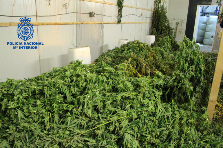 Los policías comprobaron que el camión estaba cargado de bolsas con cogollos de marihuana y que la nave, de unos 1.200 metros cuadrados y dividida en cinco estancias, contenía una gran plantación de esta droga, cada una con plantas en diversos estados de crecimiento y otra dedicada al secado. Además, contaba con seis cubas de agua de 2000 litros de capacidad cada una y dos piscinas para el riego, además de sistemas de refrigeración.