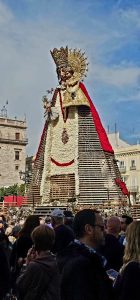 La Plaza de la Virgen de València vivió ayer martes una de sus jornadas más multitudinarias y memorables de los últimos tiempos. Un total de 60.170 personas desfilaron ante la imagen de la «Geperudeta» en el primer día de la Ofrenda de flores, lo que supone un incremento de participación del 11% en comparación con la primera jornada del año pasado.