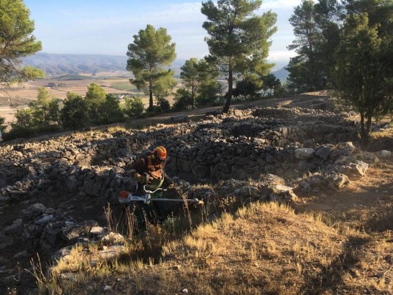 La intervención de las brigadas de Divalterra en el entorno del yacimiento –declarado Bien de Interés Cultural–, alcanza cerca de 15.000 metros cuadrados, delimitados de acuerdo con el arqueólogo del poblado íbero. Las tareas principales son de desbroce de la vegetación, poda selectiva y trituración manual de restos.